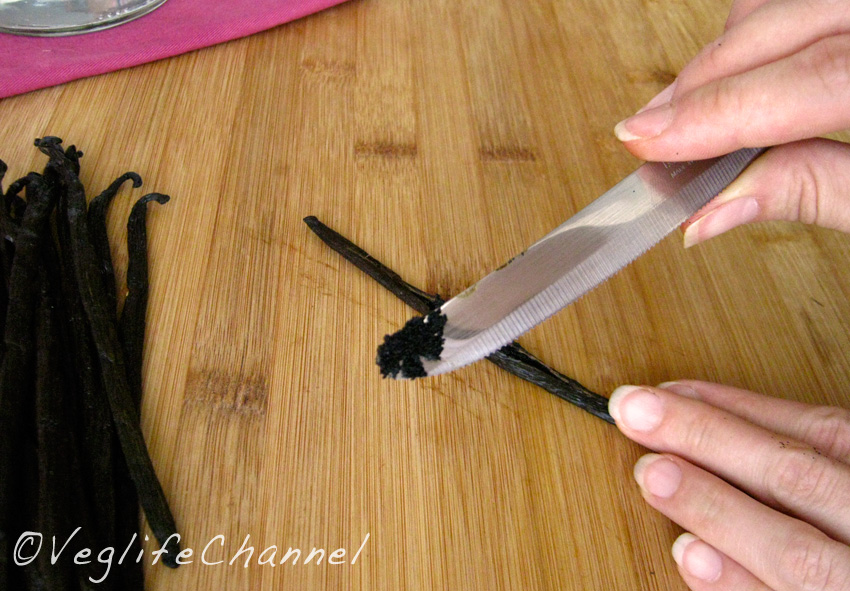 1. Utilizzando il retro di un coltello, appiattire tutto il baccello di vaniglia.