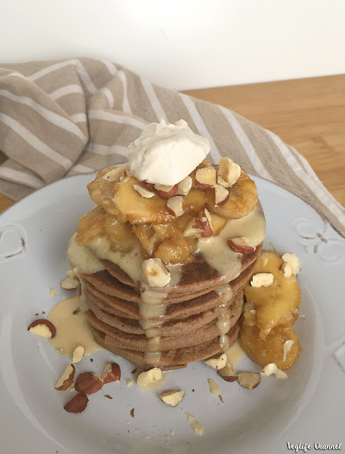 La versione che vi propongo oggi è davvero golosa perché questi pancakes sono farciti con banana caramellata con lo zucchero di cocco Bulk Powders*, che gli conferisce un profumo e un’ aroma unico e una salsa a base di burro di mandorle pelate Bullk Powders*, delicata e liscia.