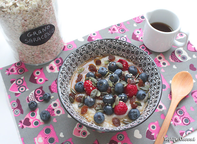 In questa ricetta vi propongo il porridge realizzato con i fiocchi di grano saraceno, ma sicuramente, in futuro, vi proporrò anche la ricetta fatta con il “cereale” in chicco.
