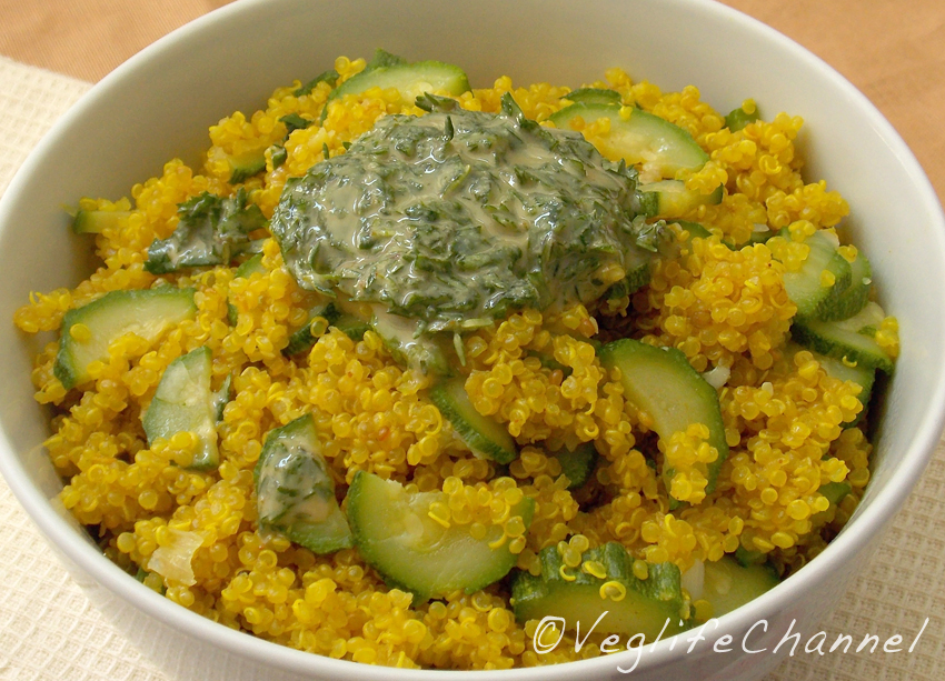 Ciao a tutti! Oggi voglio proporvi una ricettina, facile, veloce e adatta per questo periodo estivo, in quanto è buona sia mangiata tiepida che fredda. Si tratta di un primo piatto senza glutine a base di quinoa, con zucchine e curcuma, condito con una deliziosa salsa tahini-prezzemolo. Qualche giorno fa avevo postato la foto del piatto sul mio profilo Instargram e, siccome in molti mi hanno chiesto la ricetta, eccomi qui per condividerla con voi! 🙂