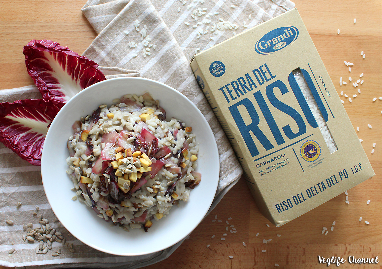 RISOTTO AL RADICCHIO CON TOFU AFFUMICATO E SEMI DI GIRASOLE