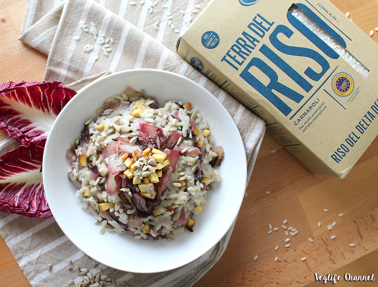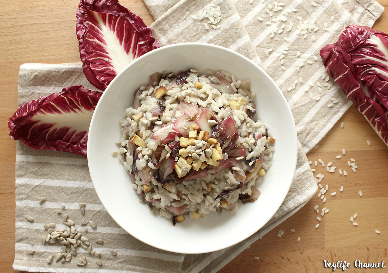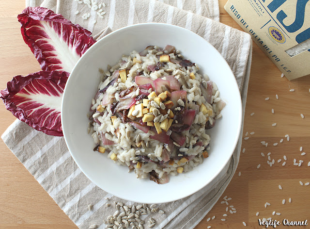 RISOTTO AL RADICCHIO CON TOFU AFFUMICATO E SEMI DI GIRASOLE