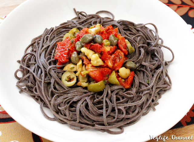Ciao a tutti! In questo post voglio proporvi una ricetta semplice e veloce da realizzare, ma lo stesso tempo molto particolare e nutriente. Si tratta di un primo piatto preparato con degli spaghetti di fagioli neri, un’ innovativa pasta di legumi realizzata con sola farina di fagioli neri! Le caratteristiche di questa pasta sono: basso indice glicemico, alto contenuto di proteine (42%), fonte di fibre, senza glutine e vegan! Ormai diversi marchi realizzano questo tipo di pasta proteica a base di legumi e c’è molta scelta, inoltre sono quasi sempre biologiche. Io ho già provato quella di ceci (la mia preferita), quella di lenticchie rosse e gialle, di piselli e di edamame, tutte buonissime, nutrienti e sazianti! Le confezioni riportano 50 gr come dose per una persona, all’inizio mi sembrava un po’ poco, invece devo dire che 50 gr sono sufficienti, perché sazia parecchio! Trovo che questo tipo di pasta sia davvero geniale! Super promossa!