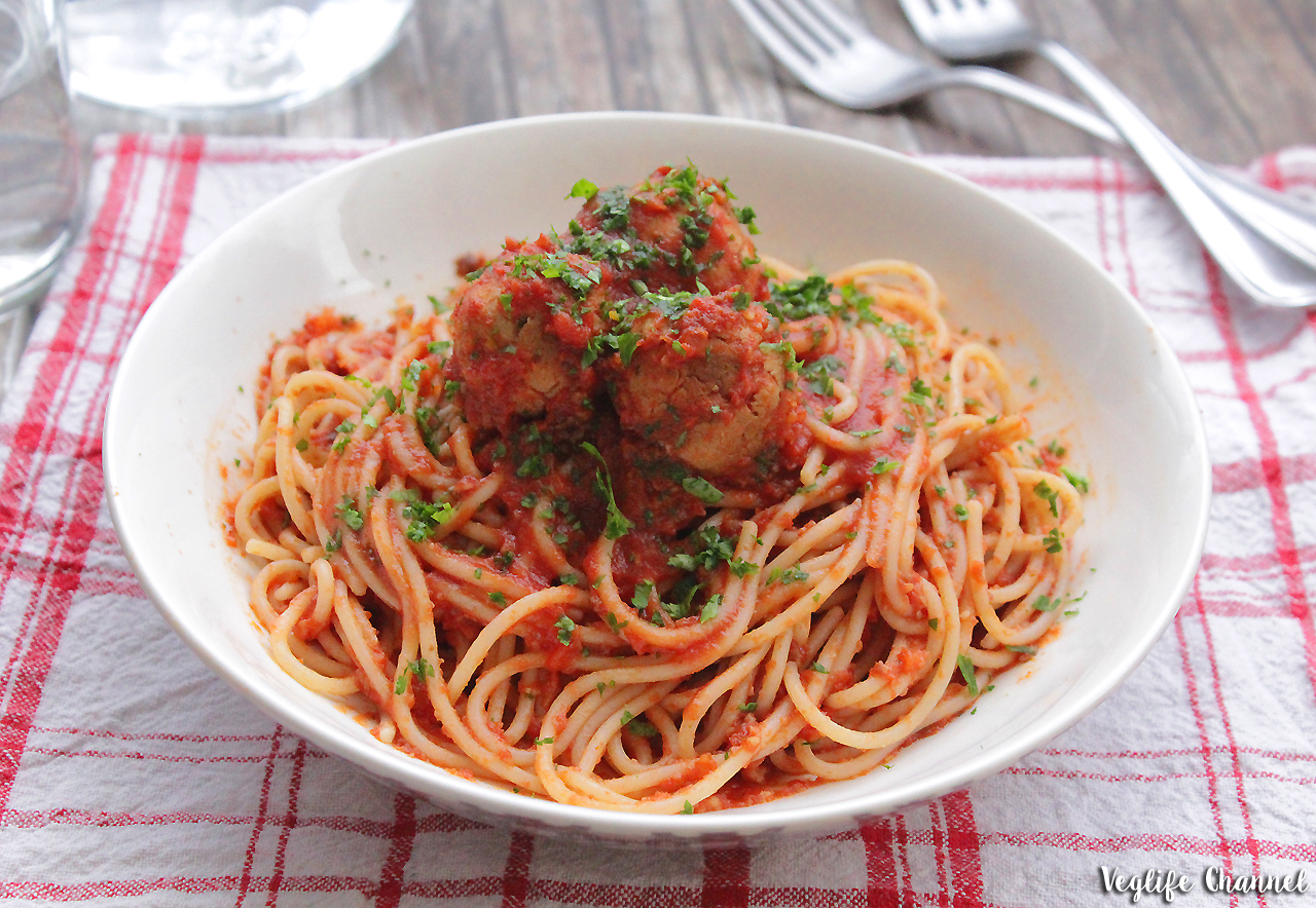 La ricetta che vi propongo non solo è vegan, in quanto le polpette sono totalmente vegetali e realizzate con la soia gialla, ma è anche integrale e senza glutine, infatti per questa ricetta ho utilizzato degli spaghetti integrali di riso!
