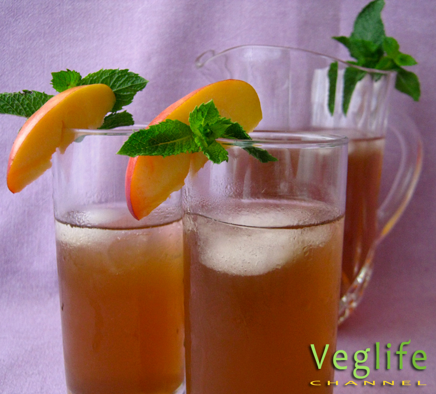Rimuovere le pesche e lasciar raffreddare a temperatura ambiente. Quando il liquido sarà freddo, aggiungere il succo del limone. Mescolare e trasferire in una bottiglia di vetro. Riporre in frigo per 1-2 h. Servire freddo con l’aggiunta di cubetti di ghiaccio e qualche fogliolina di menta.