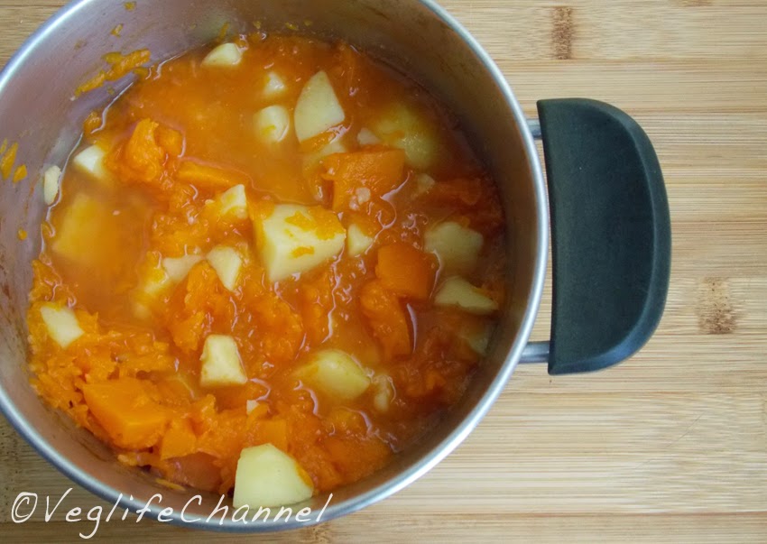 Come accennato prima si tratta di una vellutata super leggera, digeribile e senza grassi, infatti per realizzarla non faccio il classico soffritto, ma inserisco tutti gli ingredienti a freddo direttamente nella pentola, ma il sapore non ne risentirà, credetemi!